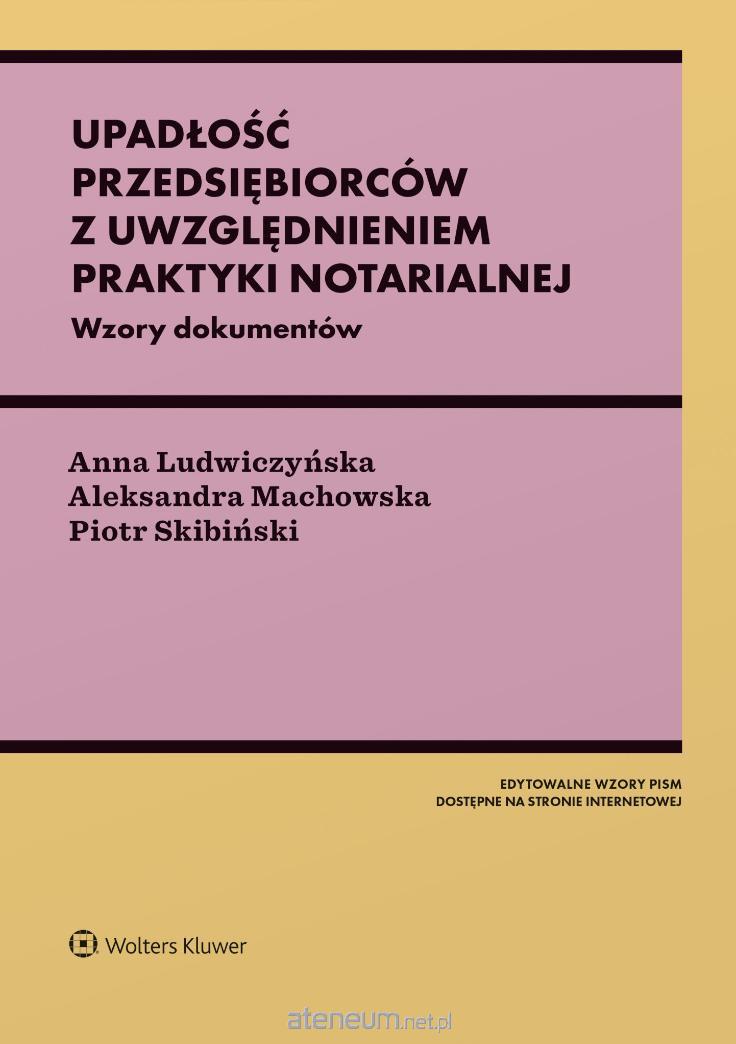 Książka stanowi unikatową pozycję na rynku wydawniczym, uwzględniającą specyfikę postępowania upadłościowego przedsiębiorców, zarówno osób prawnych (m.in. spółek), jak i osób fizycznych (prowadzących indywidualną działalność gospodarczą, wspólników spółek osobowych itp.). Publikacja zawiera omówienie problematyki z zakresu: - prawa spółek handlowych, w tym zasady reprezentacji, zdolności prawnej, skutki postępowania upadłościowego dla bytu spółek, - postępowań upadłościowych w zbiegu z innymi postępowaniami na wypadek niewypłacalności przedsiębiorcy, - wybranych zagadnień z zakresu problematyki upadłościowo-rejestrowej na tle przepisów ustawy Prawo upadłościowe oraz ustawy o Krajowym Rejestrze Sądowym, - postępowań depozytowych w związku z prowadzonym postępowaniem upadłościowym. Dużo uwagi poświęcono zagadnieniom upadłości w praktyce notarialnej, w tym: - wpływowi ogłoszenia upadłości na działania notariusza, - nabyciu spadku przez upadłego, - zasadom sprzedaży upadłościowej. Ponadto autorzy omówili zagadnienia dotyczące zakresu orzekania o zakazie prowadzenia działalności gospodarczej, które należy do jednego z najbardziej skomplikowanych kwestii związanych z postępowaniami upadłościowymi. Dodatkowo przybliżono kwestię międzynarodowego, a w szczególności - europejskiego transgranicznego postępowania upadłościowego oraz funkcjonowania Krajowego Rejestru Zadłużonych. Opracowanie zawiera praktyczne wzory (w tym aktów notarialnych) ułatwiające zredagowanie pism procesowych lub orzeczeń