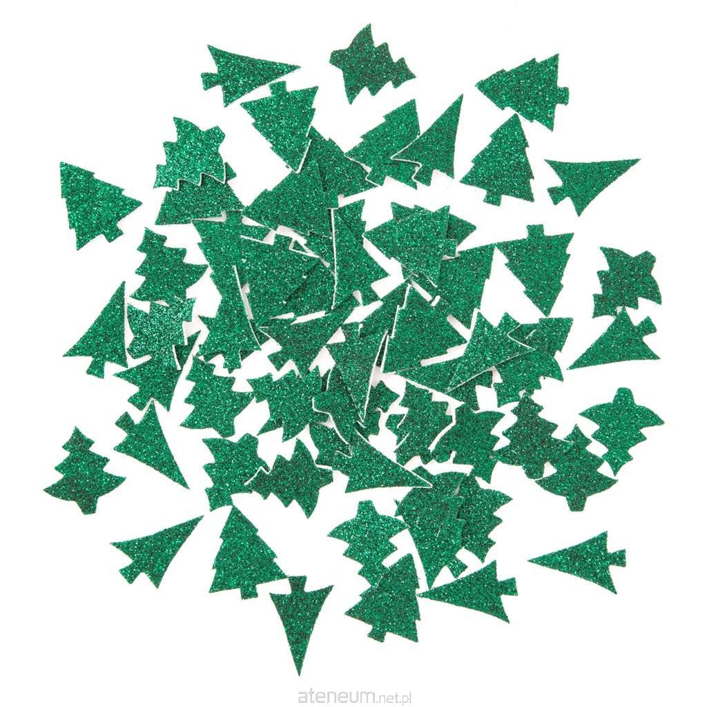 Brokatowe naklejki z pianki w kształcie choinek o zielonym kolorze doskonale nadają się do rozwijania dziecięcej kreatywności. Sprawdzą się także przy świątecznych pracach rękodzielniczych.