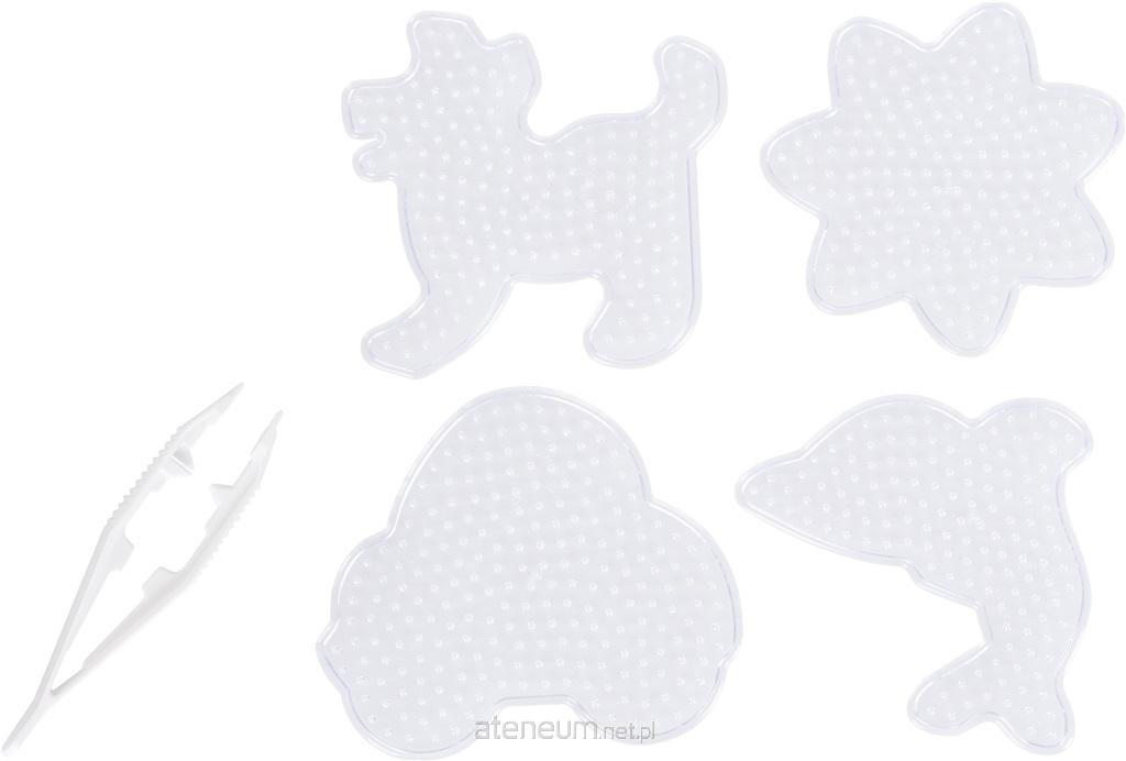 Zestaw zawiera 4 specjalne płytki do koralików do zaprasowywania oraz pęsete. Koraliki można dokupić oddzielnie.