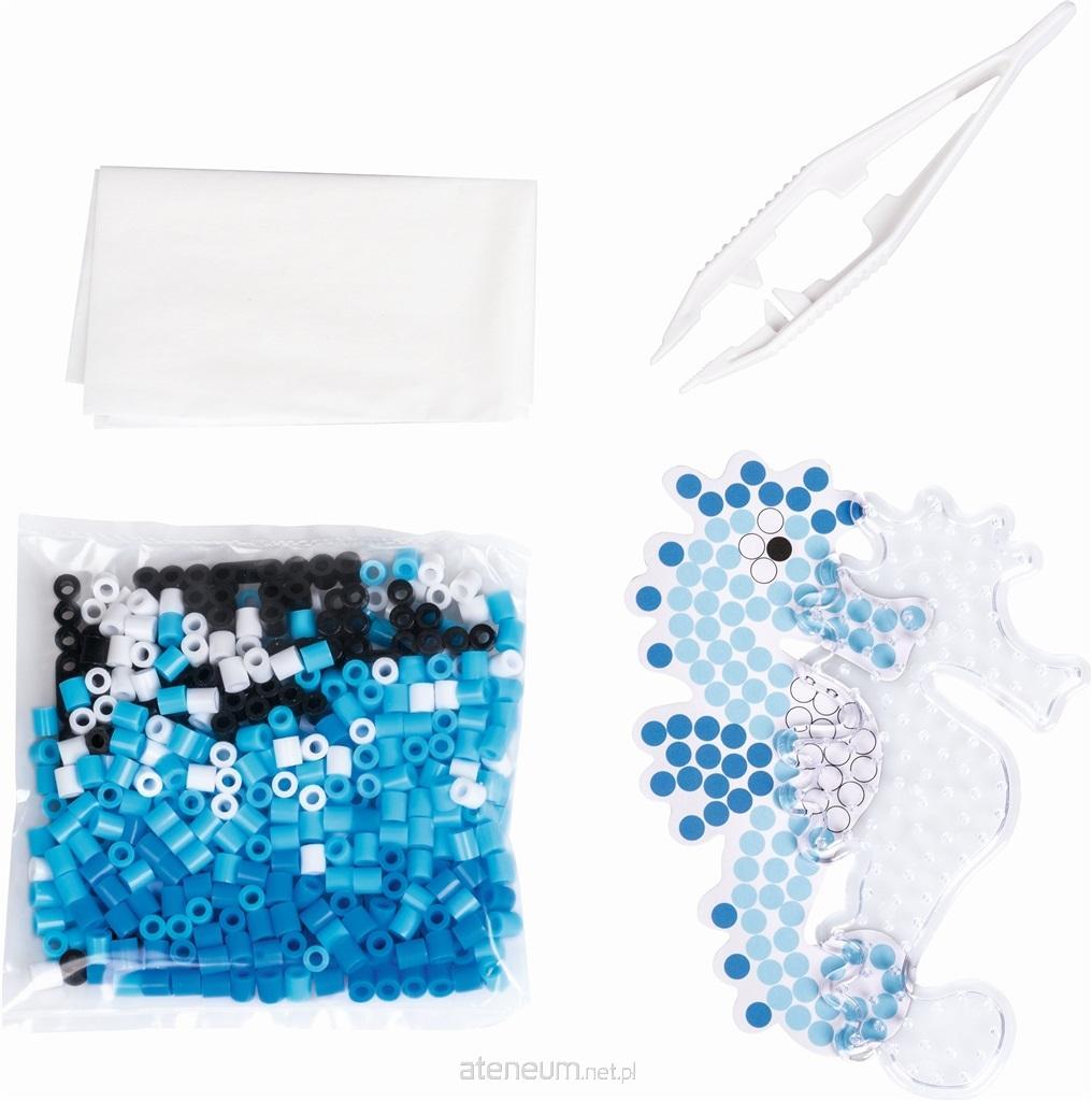Opakowanie zawiera koraliki do zaprasowywania, z których mozna wykonać dwa motywy na dołączonej podkładce. Zestaw zawiera również pęsetę, papier do zaprasowywania oraz instrukcję.
