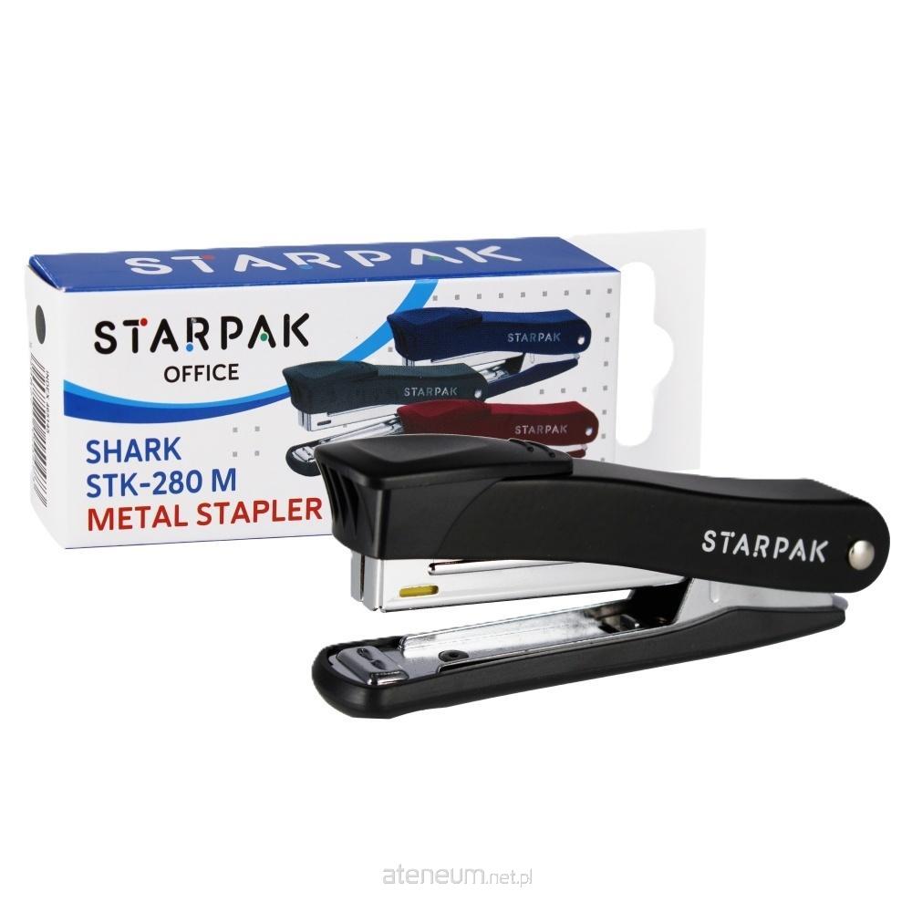 Nowoczesny zszywacz biurowy STARPAK. Zszywa jednorazowo do 12 kartek gramatury 80 g/m2. Do zszywacza należy stosować zszywki No. 10. Magazynek mieści 100 zszywek. Głębokość zszywania - 60 mm. Możliwość zginania zszywek do wewnątrz i na zewnątrz. Bezpieczny system zamykania magazynka. Zapoznaj się również z innymi produktami Starpak dedykowanymi dla biura! . Do zszywacza należy stosować zszywki No.10. Produkt wykonany z plastiku oraz metalu. Zszywacz w kolorze czarnym.