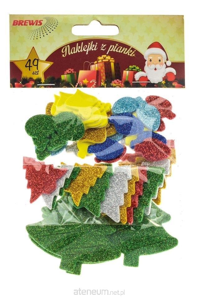 Naklejki z pianki choinki z brokatem 50szt