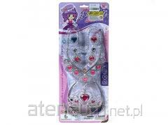 Zestaw kosmetyków dla dzieci w mini walizce zawiera 6 cieni do powiek, 6 błyszczyków, 1 szminka, 2 pierścienie, 1 pędzel, 1 aplikator.