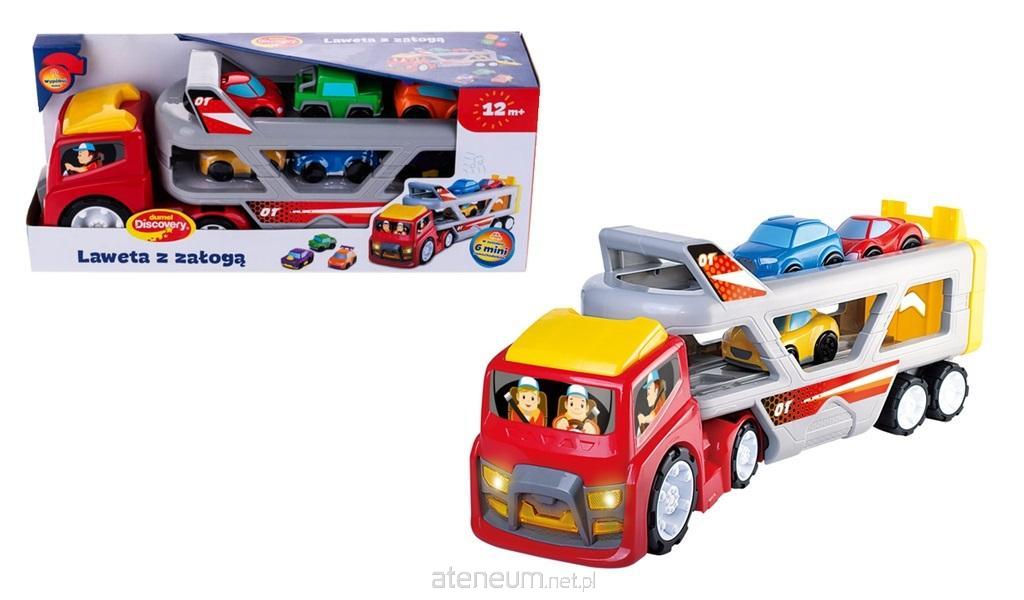 Przewoź samochodziki i ciesz się realistycznymi, odgłosami! W zestawie znajduje się duża laweta ze światełkami, dźwiękami i melodią oraz 6 małych samochodzików, które mieszczą się idealnie na dwóch poziomach lawety. Każdy z samochodów ma inny kształt i kolor, więc bez trudu je odróżnisz. Laweta została wyposażona w rampę z opuszczanym wjazdem, co ułatwia samochodzikom wjazd "na pokład" i zajęcie miejsca na jednym z poziomów