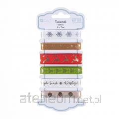 Zestaw bawełnianych tasiemek w kremowo-czerwonych kolorach z motywami reniferów, choinek, prezentów, świątecznych napisów i ozdobnych wzorów. Tasiemki Scandi Christamas będą prezentować się pięknie przy projektach w stylu skandynawskim, vintage, eko i