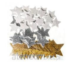 Samoprzylepne gwiazdki z zatopionymi drobinkami srebrnego brokatu, które wspaniale mienią się w świetle.