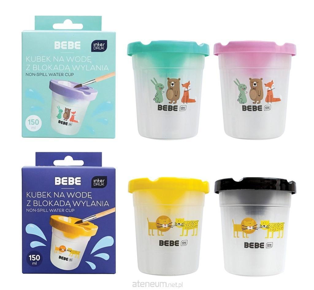 Pojemność: 150 ml. Kubek dla najmłodszych ze specjalną blokadą przeciw wylaniu wody. Praktyczne wyprofilowane miejsce w pokrywce służy do odkładania pędzelków, a dodatkowa zatyczka umożliwi bezpieczne przenoszenie pełnego kubka. Na kubku podobizny zwierzaków BEBE. Wymiary pudełka: 8,1x8,1x9,1 cm. Wymiary kubka: średnica 8 cm, wysokość 9 cm.