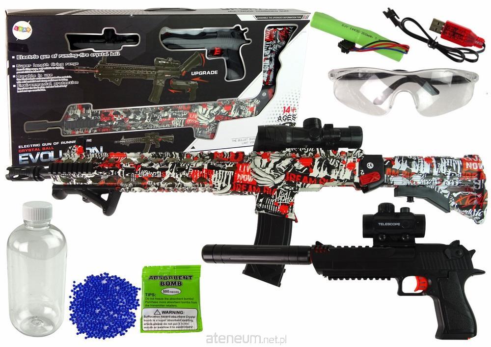 Karabin Pistolet na Kulki Wodne Akcesoria Kolorowy Ten zestaw broni zapewnia realistyczne doznania i wiele zaawansowanych funkcji, co sprawia, że stanowi fascynujący gadżet dla miłośników militariów. Zarówno karabin, jak i pistolet wyróżniają się nie tylko wyglądem, ale także rozbudowanymi możliwościami. Oba modele posiadają teleskopy, które pozwalają na dokładne oddawanie strzałów. Karabin wyposażony jest w laser, który ułatwia precyzyjne celowanie, podczas gdy pistolet wyposażony jest w tłumik, który pozwala na bardziej dyskretne strzelanie. Niezwykłą cechą tego zestawu jest możliwość korzystania z pistoletu osobno lub włożenia go do karabinu, tworząc tym samym bardziej wszechstronną broń. Karabin jest zasilany akumulatorowo, co zapewnia długotrwałe użytkowanie. W zestawie znajdują się również okulary ochronne, które zapewniają bezpieczeństwo podczas strzelania. Dodatkowo, znajdziesz w nim także kulki oraz pojemniczek na nie, co sprawia, że masz wszystko, czego potrzebujesz, aby cieszyć się realistycznymi doświadczeniami. Całość została wykonana z trwałego plastiku, co gwarantuje ich długotrwałość. Wymiary pistoletu wynoszą: 40 cm x 19 cm x 3 cm, natomiast karabinu: 79 cm x 29 cm x 5 cm. Ten zestaw stanowi nie tylko fascynujący gadżet, ale także doskonałą propozycję dla miłośników militariów, którzy chcą doświadczyć strzelania w bezpieczny i kontrolowany sposób! Elementy zestawu: - karabin - pistolet - 2 teleskopy - tłumik - laser - okulary - kulki - pojemnik na kulki - podkładka - akumulator - kabel do akumulatora Wymiary pistoletu: 40 cm x 19 cm x 3 cm Wymiary karabinu: 9 cm x 29 cm x 5 cm Wymiary opakowania: 75 cm x 35 cm x 8 cm Posiada certyfikat CE, ponadto jest zgodny z normą EN71. Zabawka przeznaczona jest dla dzieci powyżej 14 roku życia.