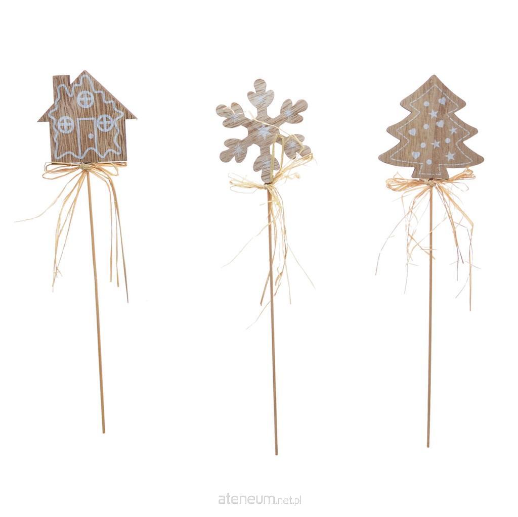 Drewniane piki w świątecznych wzorach ozdobione rafią. Wysokość piku to 25 cm.