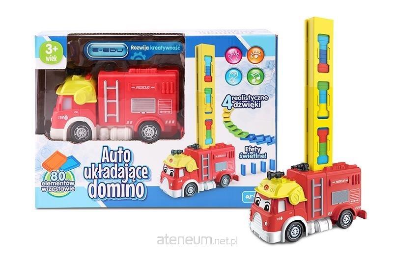 W zestawie: wóz strażacki 19 cm., Rozsuwana drabina na klocki, 80 klocków domino w różnych kolorach, funkcje: mówi - pożar, jedziemy, dźwięk pracy silnika, 2 sygnały ostrzegawcze, ruch głośnikiem powoduje zmianę kierunku jazdy, kolorowe podświetlenie kabiny, wym. Opk: 33 x 23,5 x 9 cm, baterie: 3 x aa 1,5v brak w zestawie, 3+