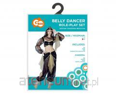 Kostium elfa dla dziecka. W skład zestawu wchodzi czapka, bluzka z kołnierzykiem oraz spodnie i pasek. Zielona czapka obszyta u dołu czerwonym pasem ma wszytą gumkę, co ułatwia dopasowanie. Bluzka jest w kolorze zielonym z czerwonym kołnierzykiem. Spodnie z gumką w pasie są w białe oraz zielone pasy. Czarny pasek posiada plastikową klamrę w złotym kolorze. Pasek zapina się na rzep. Elf to idealny dziecięcy strój na zabawę tematyczną lub świąteczne przedstawienie. Strój w rozmiarze: M (120-130 cm).