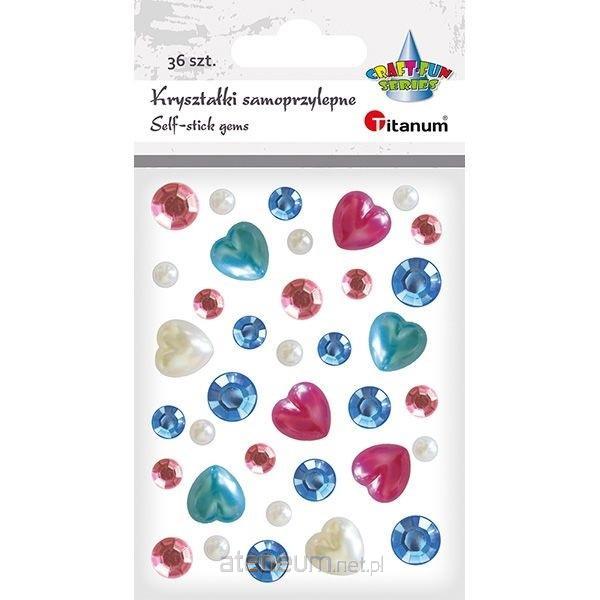 Kryształki samoprzylepne mix wzorów, tonacja różowo-niebieska 36 szt. Rodzaj: okrągłe 12, 8 mm, perełki serca 14 x 14 mm i perełki okrągłe 6 mm.