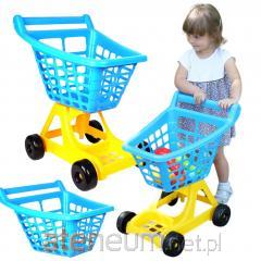 Wózek sklepowy na kółkach + plastikowe owoce oraz imitacje produktów spożywczych w kartonikach.