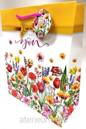 Torebka prezentowa uniwersalna L Kwiaty brokat mix