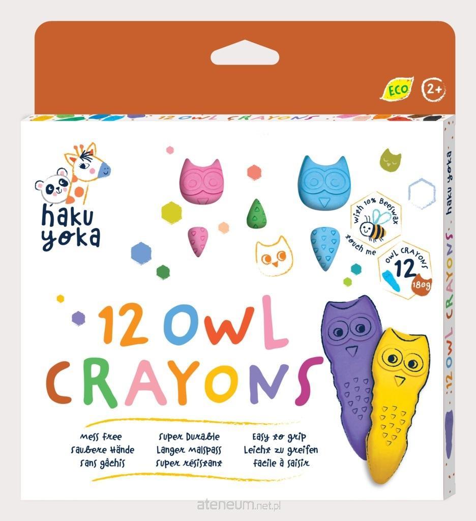 Dzięki specjalnej powierzchni i kształtowi kredki Haku Yoka zapewniają maluchom wygodny i pewny chwyt.Eko kredki wykonane są z 10% wosku pszczelego, a ich opakowania wykonane są z papieru FSC.Nie pozostawiają plam.Opakowanie zawiera 12 kredek sówek w różnych kolorach.