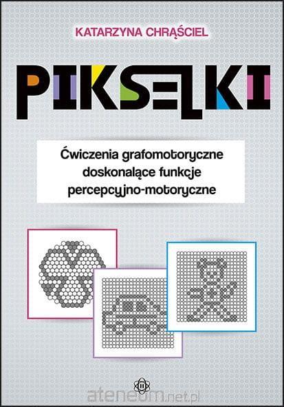 Pikselki to ćwiczenia graficzne polegające na odwzorowywaniu rysunków. Na każdej stronie książki znajduje się obrazek wzorcowy, poniżej którego pozostawiono miejsce na stworzenie nowego, przekopiowanego przez dziecko z wzoru powyżej. Martyce rysunków składają się z szeregu licznych, drobnych kółeczek pikseli tworzących kształt koła lub kwadratu. Zadanie polega na zamalowaniu tych samych punkcików pikseli, co we wzorze. Liczy się precyzja, dokładność i uważność. Zabawa rozwija spostrzegawczość, percepcję wzrokową, koordynację wzrokowo-ruchową oraz uwagę wzrokową.