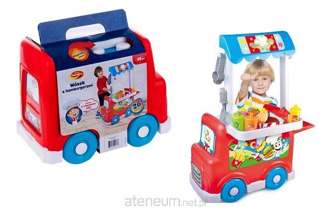Komu hamburgera, komu frytki? Duży zestaw z wózeczkiem zawiera wszystko, czego potrzeba, aby wcielić się w rolę sprzedawcy przekąsek! Znajdziemy tu aż 26 elementów, a wśród nich zabawkowe jedzenie, tacki, łopatkę i frytkownicę. Wózek łatwo przekształcisz w busik, w którym zmieścisz wszystkie zapasy. Dodatkowo, jego tylne drzwi możesz podnieść do góry, czyniąc z nich praktyczny stolik do serwowania zamówień. Wózeczek wyposażony został w przyciski uruchamiające wesołe melodie. Zabawa w odgrywanie ról to nie tylko prawdziwa frajda, ale też świetne ćwiczenie, rozwijające wyobraźnię i kreatywność