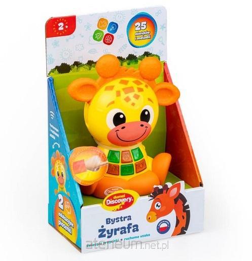 Niewielki rozmiar, bogate wnętrze! Mądra żyrafka uczy maluchy cyferek i śpiewa dwie edukacyjne piosenki. Zwierzak odtwarza aż 25 różnych dźwięków i melodii, z którymi zabawa stanie się jeszcze weselsza! Na brzuszku żyrafy znajdują się przyciski, aktywujące światełko i poszczególne dźwięki. Uszka zwierzaka także wydają odgłos, a jest nim terkotanie, które dziecko usłyszy za każdym razem, gdy przekręci je w prawą lub w lewą stronę
