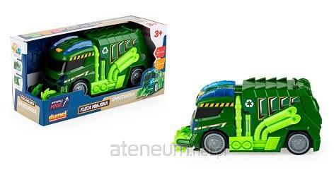 Śmieciarka w stylowej odsłonie! Wyrusz z nią na patrol i przetestuj wszystkie, ekscytujące funkcje tego odjazdowego pojazdu. Wyposażony jest on w ręcznie otwieraną komorę, znajdującą się z tyłu samochodu, oraz łopatki przed maską, które można ręcznie obracać. Na dachu samochodu znajduje się przycisk aktywujący światła dachowe oraz realistyczne odgłosy silnika i muzykę.