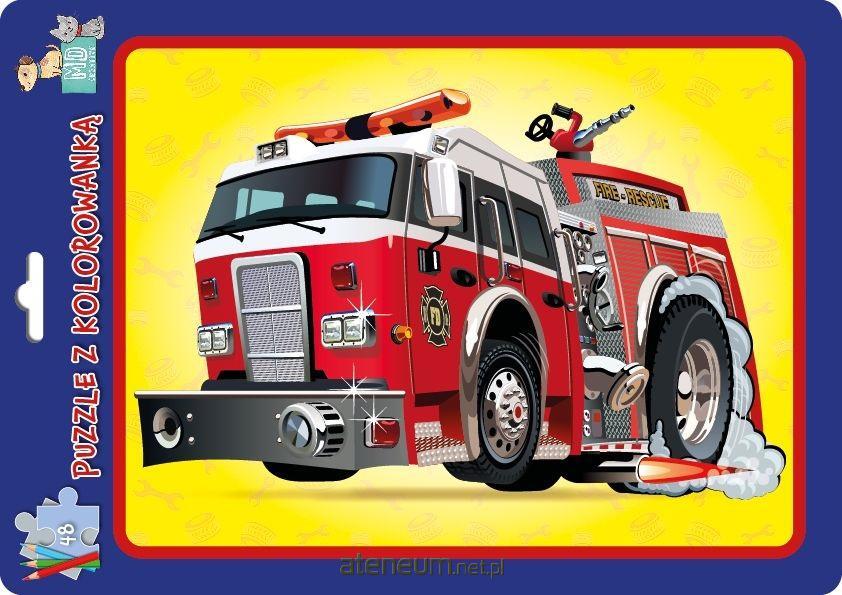 Puzzle w ramce z kolorowanką. Wóz strażacki