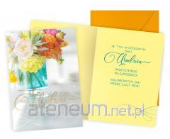 Karnet w formacie 15 x 15 cm. Wydrukowany na wysokiej jakości papierze. Karnet z tłoczonymi wzorami na całej powierzchni oraz złoceniem. W zestawie kolorowa koperta.