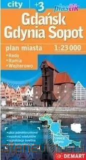 Mapa samochodowa Trójmiasta plus 3 (Reda, Rumia, Wejherowo) w nowej wersji plastik.