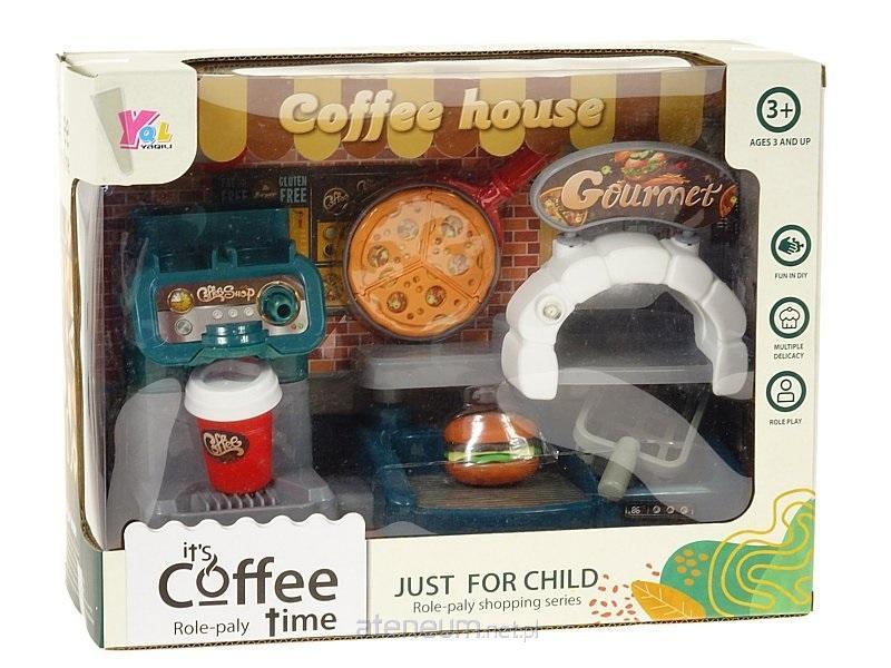 Zestaw: budka z burgerami, expres do kawy, kasa.