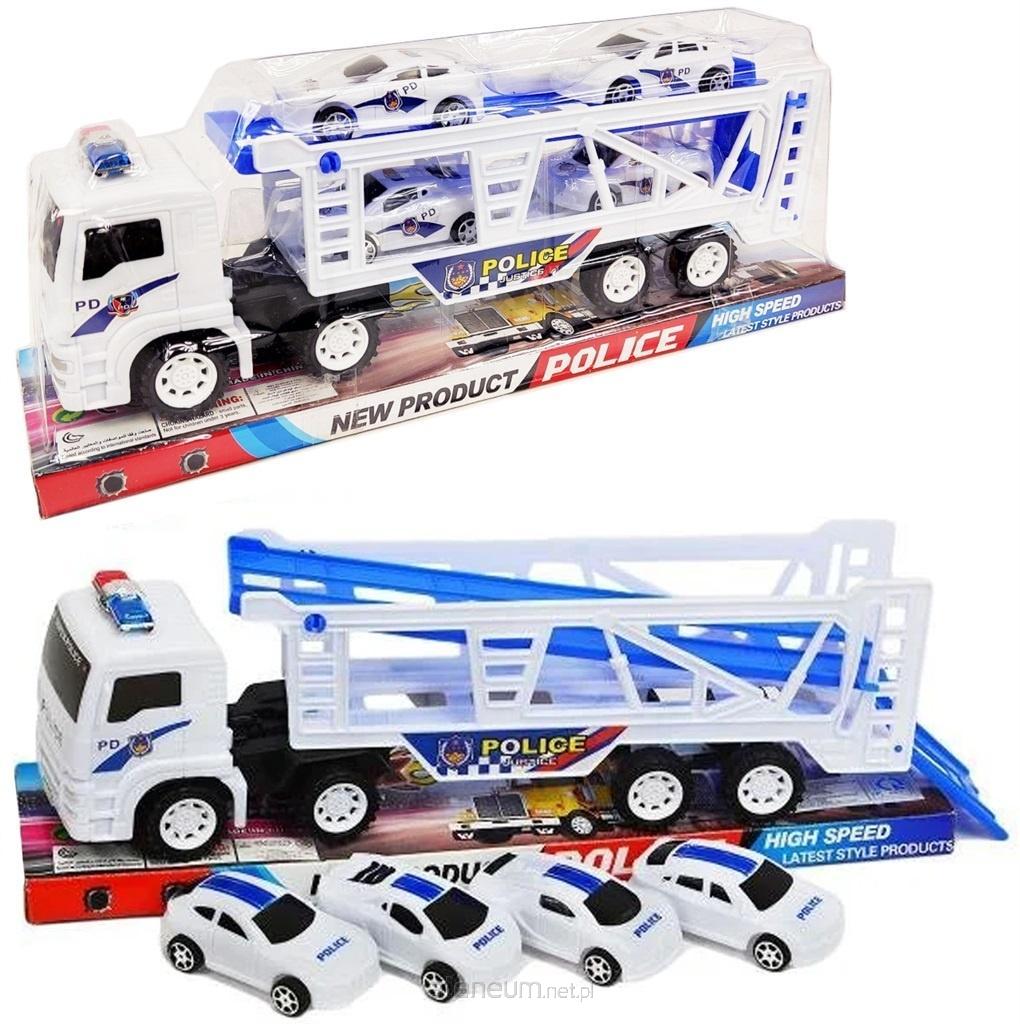 Laweta policyjna z otwieranym tyłem i 4 autkami w komplecie.