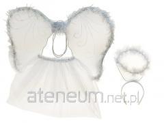 Opalizujące, kolorowe skrzydełka dla dziecka, w komplecie z różdżką. Skrzydełka posiadają elastyczne gumki umożliwiające komfortowe założenie oraz noszenie skrzydełek. Skrzydełka efektownie się mienią i doskonale komponują z błyszczącą różdżką. Różdżka zakończona została brokatową gwiazdką, od której ku dołowi odchodzą elementy dekoracyjne. Zestaw doskonale pasuje do przebrań wróżki czy magicznego jednorożca. Doskonały na sesje zdjęciowe, zabawy, bale przebierańców. Wymiary skrzydełek: 35x20 cm.