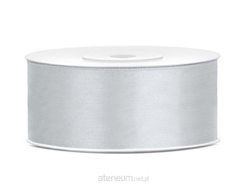 Tasiemka satynowa w kolorze srebrnym, szerokość 25 milimetrów, długość 25 metrów.(1 szt. / 25 mb.)