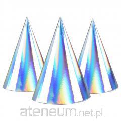 Złote czapeczki papierowe z nadrukiem gwiazdek. Kultowy element imprezowego stroju. Idaelne na imprezy urodzinowe i sylwestrowe. Czapeczki posiadają cienką gumeczkę zapobiegają spadaniu z głowy podczas noszenia. Czapeczki o wysokości 16 cm. W opakowaniu znajdują się 4 sztuki.