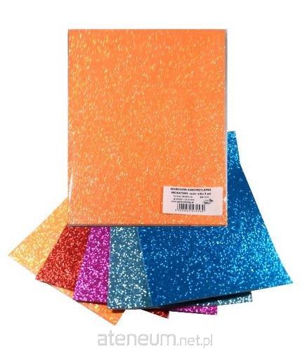 Mikroguma (pianka EVA) , samoprzylepna w kolorach brokatowych. Opakowanie zawiera 5 arkuszy w formacie 20x30 cm w kolorach jak na zdjęciu.