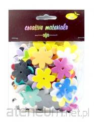 Zestaw elementów w formie kwiatów z pianki wielkości 38-52 mm , zawierający 56 elementów, w kolorystyce wiosennej pakowany w eleganckie opakowanie z eurozawieszką. Elementy można naklejać na każdą powierzchnię lub używać do innych zdobień. Opakowanie zawiera miks kolorystyczny elementów.
