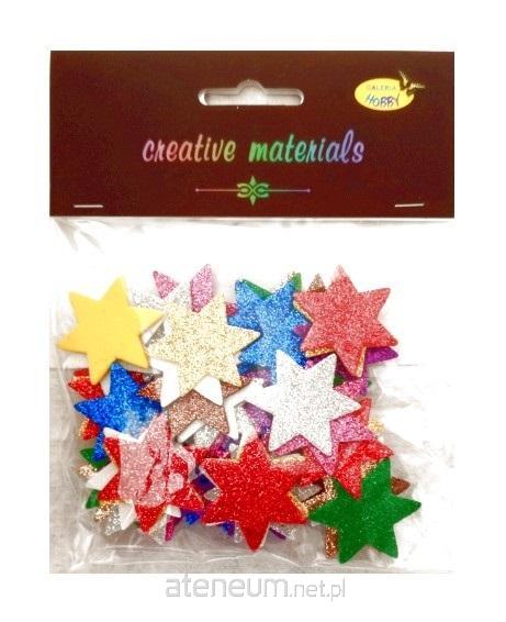 Zestaw elementów w formie gwiazdek z pianki brokatowej wielkości 40 mm , zawierający ok. 60 elementów, pakowany w eleganckie opakowanie z eurozawieszką. Elementy można naklejać na każdą powierzchnię lub używać do innych zdobień. Opakowanie zawiera miks kolorystyczny elementów.