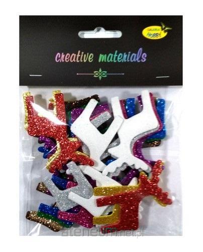 Zestaw elementów w formie renieferów z pianki brokatowej wielkości 70 mm , zawierający ok .30 elementów, pakowany w eleganckie opakowanie z eurozawieszką. Elementy można naklejać na każdą powierzchnię lub używać do innych zdobień. Opakowanie zawiera miks kolorystyczny elementów.