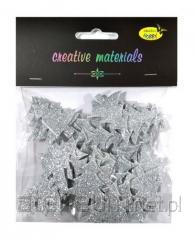 Elementy z mikrogumy brokatowej : Śnieżynki, wielkość ca.4,8 cm miks kolorów zimnych.Kod : DS5211-SN