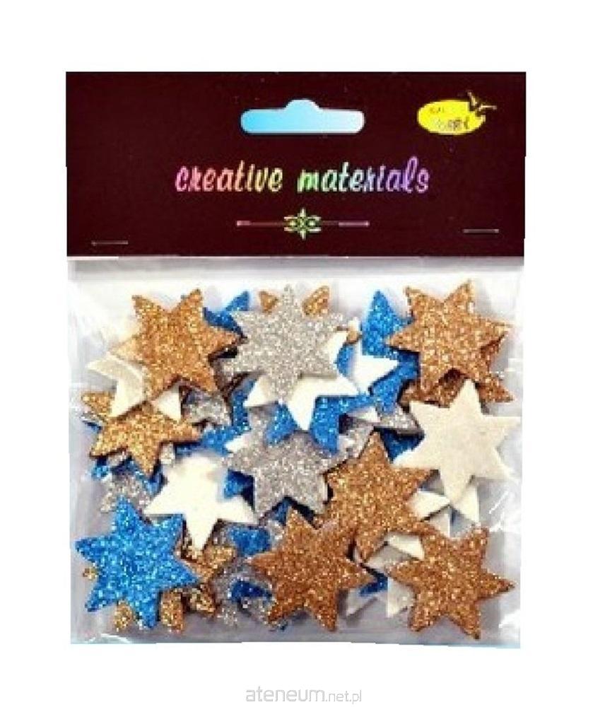 Elementy z mikrogumy brokatowej : Gwiazdki , wielkość ca. 3,5 cm miks kolorów zimnych.Kod : DS5211-GZ