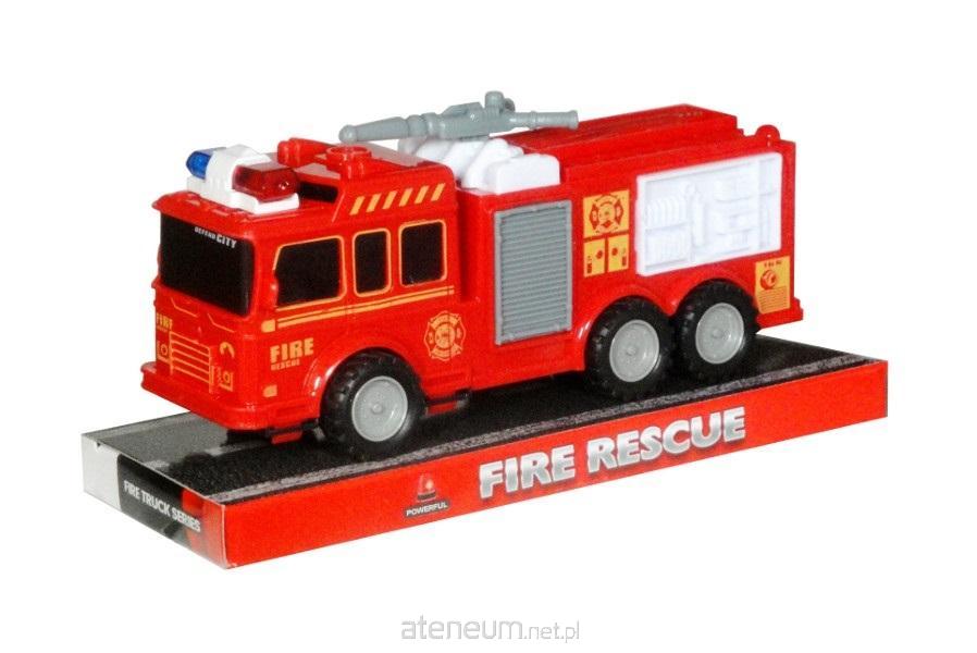 Zabawka straż pożarna. Zabawka zapakowana w kartonową podstawkę z przezroczystym kloszem. Zabawka przeznaczona dla dzieci od 3 lat. Podane wymiary stanowią wymiar opakowania.