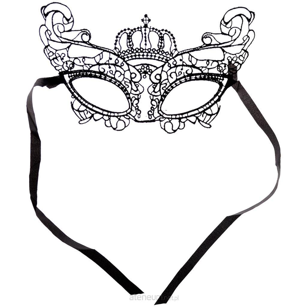 Subtelna maska wenecka z czarną wstążką. Koronkowa, materiałowa. Eleganckie i efektowne uzupełnienie stroju. Kolor: czarny. Rozmiar: 27cm.