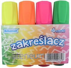 Zakreślacze w neonowych kolorach ze ściętą końcówką. Tusz jest transparentny, więc nie przysłania zaznaczonego tekstu, a jaskrawe kolory zakreślaczy przykuwają spojrzenie i wyróżniają zakreślony tekst. Doskonale sprawdzi się w szkole i na uczelni, przyspieszając proces zapamiętywania. Jest także niezawodnym narzędziem w biurze, ułatwiając organizację czasu i pracy. Kolory: cytrynowy, pomarańczowy, różowy i zielony.