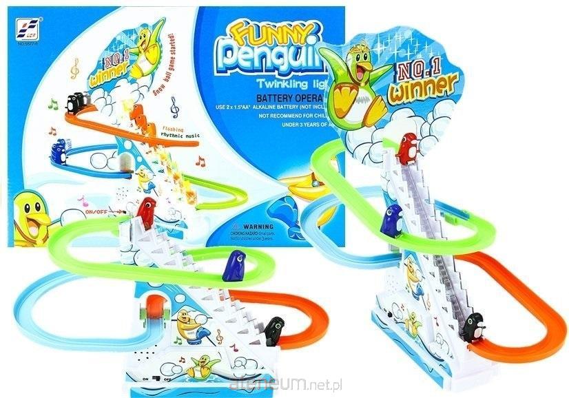 ZESTAW PINGWINY NA RUCHOMYCH SCHODACH Śliczna kolorowa zabawka dla najmłodszych pociech. Zabawka wykonana jest bardzo starannie i dokładnie, w trakcie zabawy gra rytmiczna wesoła melodyjka . Zabawa polega na przemieszczaniu się Pingwinków ze schodków do śliskiej zjeżdżalni, aby potem z powrotem dostać się na ruchome schody. Podczas całej zabawy są okrzyki zachwytu, gra wesoła melodyjka. Dzieci uwielbiają zabawki, kolorowe i wesołe . Pingwinki zapewnią atrakcje w 100%. Zestaw zawiera - 3 pingwiny - ruchome schodki -zjeżdżalnie - 1 kolorową plansze Wysokość złożonego zestawu -ok.25cm Urocza, kolorowa i wesoła zabawka dla dzieci lubiących interaktywne zabawy. Zabawka zasilana jest na 2 baterie typu AA 1,5V (brak w zestawie). Schodki zapakowane są w urocze kolorowe pudełko idealnie nadające się na prezent. Wymiary opakowania: 26,4 cm x 18,6 cm x 5,8 cm