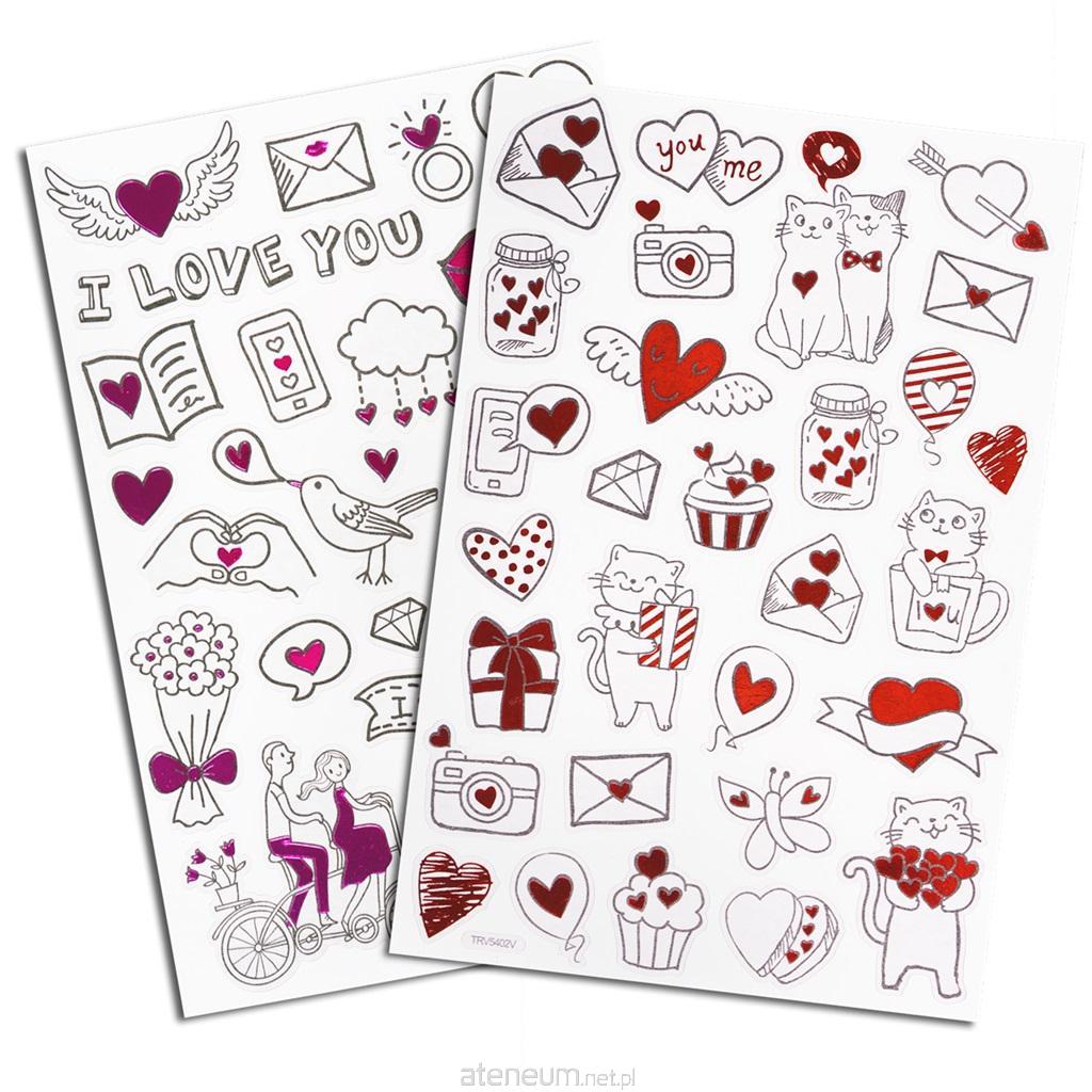 Naklejki walentynkowe - serduszka na wesoło. 1 komplet. Wielkość arkusza 21x14cm.