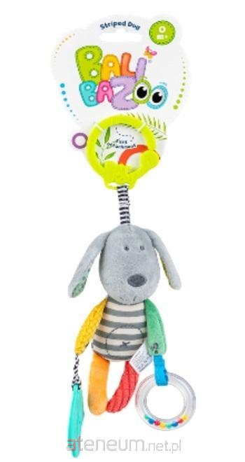 Kompaktowa zawieszka w kształcie pieska towarzyszyć może bobasowi w każdym miejscu, zdobiąc fotelik, wózeczek czy łóżeczko. Uroczy psiak uszyty został z materiałów o zróżnicowanych wzorach i fakturach, dzięki czemu stymuluje zmysły malucha, wpływając korzystnie na rozwój jego zdolności poznawczych. Łapki pieska zdobi miękki gryzak, który ukoi obolałe ząbkowaniem dziąsełka, i grzechoczącą obręcz wypełnioną kolorowymi kuleczkami. Praktyczny uchwyt, w który wyposażony została zabawka, umożliwia jej łatwe zamocowanie w dowolnym miejscu.