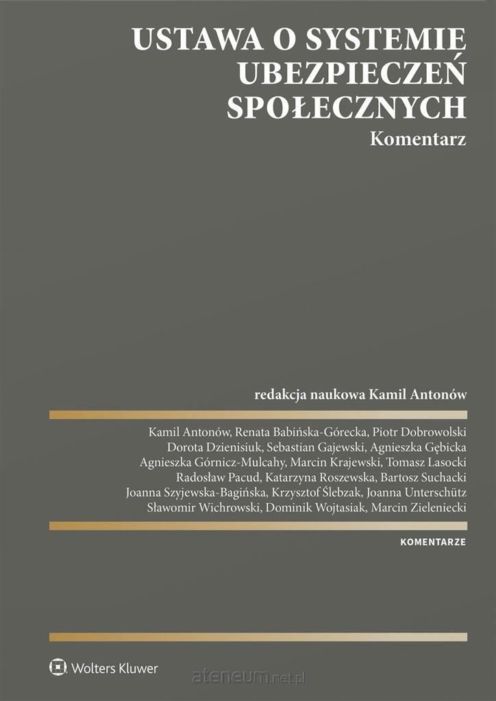 Komentarz dotyczy: podlegania ubezpieczeniom społecznym, ustalania i rozliczania składek oraz ich ewidencjonowania na kontach płatników i kontach (subkontach) ubezpieczonych, zwrotu nienależnie pobranych świadczeń, prowadzenia dokumentacji ubezpieczeniowej wraz z przedstawieniem związanych z tym praw, obowiązków i odpowiedzialności płatników i ubezpieczonych oraz przysługujących im środków odwoławczych. Dużo uwagi poświęcono również kwestiom: organizacji ubezpieczeń społecznych (analiza statusu prawno-administracyjnego Zakładu Ubezpieczeń Społecznych), finansowania ubezpieczeń społecznych w sferze instytucjonalnej (analiza statusu prawno-ekonomicznego Funduszu Ubezpieczeń Społecznych i Funduszu Rezerwy Demograficznej), kontrolowania wykonywania zadań z zakresu ubezpieczeń społecznych i odpowiedzialności za wykroczenia przeciwko przepisom ustawy o systemie ubezpieczeń społecznych. Komentarz przeznaczony jest dla adwokatów, radców prawnych, sędziów i innych prawników zajmujących się rozstrzyganiem spraw z zakresu ubezpieczeń społecznych. Będzie także pomocny ekonomistom, księgowym oraz przedsiębiorcom wszelkich branż, dostarczając wiedzę i rozwiązania prawne w zakresie podlegania, ustalania i rozliczania składek na ubezpieczenia społeczne oraz dokonywania zgłoszeń do tych ubezpieczeń. Z uwagi na szerokie uwzględnienie orzecznictwa i literatury przedmiotu będzie przydatny również pracownikom naukowym wydziałów prawa i ekonomii uczelni wyższych.