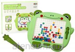 Kolorowy znikopis dla dzieci Tablica magnetyczna to genialna zabawka, którą prawdopodobnie poznali wszyscy rodzice i opiekunowie jeszcze za czasów swojego dzieciństwa. Znikopis służy do pisania i rysowania magicznych, znikających obrazków niezliczoną ilość razy - ale nie tylko! Jest świetną formą zarówno zabawy, jak i pomocą rozwijającą umiejętności manualne i plastyczne dziecka. Prezentowana tablica magnetyczna wyposażona jest w wysokiej jakości duży ekran, który podzielony jest na cztery obszary - zielony, żółty, niebieski i brązowy. Innowacja to pozwala na tworzenie niesamowicie oryginalnych, wielokolorowych obrazków. Jak działa znikopis? To bardzo prosta zabawka edukacyjna. Pod powierzchnią ekranu umieszczone są opiłki żelaza, które w trakcie rysowania specjalnym rysikiem układają się w stworzony przez dziecko wzór. By zmazać obrazek, wystarczy tylko delikatnie przesunąć suwak umieszczony w dolnej części przedmiotu. Warto pamiętać, że z tablicy magnetycznej należy korzystać tylko za pomocą dołączonego do zestawu magnetycznego rysika. Pod żadnym względem nie wolno używać na ekranie klasycznych długopisów, pisaków bądź piór atramentowych. Zabawka posiada antypoślizgowy uchwyt, dzięki któremu można ją zabrać dosłownie wszędzie, bez konieczności noszenia zestawu papieru oraz kredek. Ta zabawka rozrywkowo-edukacyjna wykonana jest bardzo estetycznie i starannie z certyfikowanych materiałów najwyższej jakości. Żywa kolorystyka przedmiotu z pewnością zachęci każdego malucha do zabawy. Znikopis przeznaczony jest dla dzieci powyżej 3. roku życia. Wymiary zabawki: - znikopis: 26,5 cm x 18,5 cm, - ekran: 15 cm x 11,5 cm, - rysik: 7 cm. Wymiary opakowania: - 32 cm x 22 cm x 4 cm.