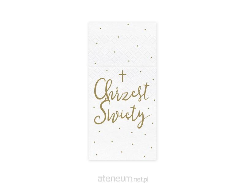 Serwetki papierowe z kieszonką na sztućce ''Chrzest Święty'' w kolorze białym ze złotym nadrukiem, wymiary złożonej serwetki ok. 10 x 20 cm.(1 op. / 6 szt.)