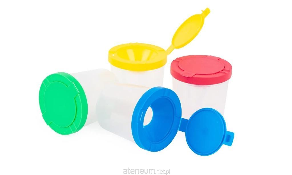 plastikowy kubek, 2 wgłębienia umożliwiają wygodne układanie pędzli, zakręcające się wieczko po przewróceniu woda nie wypłynie, wysokość 7,5 cm, średnica 5,5 cm