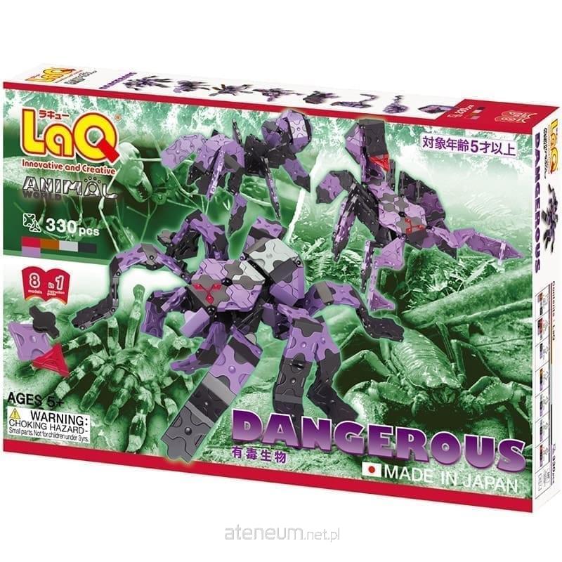 "LaQ Dangerous" to zestaw aż 8 groźnych zwierząt, z których można zbudować pająka tarantulę, osę, smoka z Komodo, mrówkę kulkę i inne niebezpieczne zwierzęta z całego świata. Zestaw wyróżnia się dzięki nowemu lawendowemu kolorowi części LaQ. Seria najbardziej trujących stworzeń, która uzupełnia już istniejącą kolekcję zwierząt. Skonstruowane modele odzwierciedlają cechy prawdziwych zwierząt i mogą być świetnym sposobem na wzbogacenie lekcji przyrody w szkołach. 330 części; 8 schematów konstruowania: Pająk Tarantula, osa, smok z Komodo, mrówka kula itp. 5 kolorów; NOWOŚĆ: Nowe lawendowe części z kolekcji LaQ w zestawie! Zalecany wiek: 5+ Poziom trudności: Średni Części LaQ są wielokrotnego użytku, a zestaw może być użyty do przebudowy nawet 8 różnych modeli. MADE IN JAPAN
