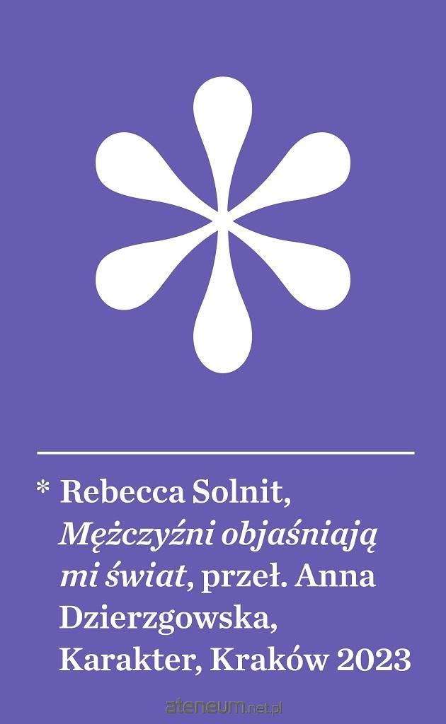 Mężczyźni objaśniają mi świat III wydanie Zaczyna się niewinnie, od czegoś, co przy pewnej dozie dobrej woli można by uznać za towarzyską niezręczność. Podczas przyjęcia pan domu nie przyjmuje do wiadomości, że rozmawia z autorką książki, którą właśnie jest jej łaskaw objaśniać. Rebecca Solnit widzi jednak w tym zdarzeniu coś więcej, coś, z czym stykają się na co dzień miliony kobiet na świecie: przejaw symbolicznej przemocy ze strony mężczyzn, emanację patriarchalnego systemu, w którym funkcjonujemy. To jednak zaledwie czubek góry lodowej - autorka opowiada o innych zdarzeniach (często obficie relacjonowanych przez media), w których ujawnia się symboliczna lub nawet fizyczna przemoc wobec kobiet (w Stanach Zjednoczonych co 6 minut zgłaszany jest gwałt, a są to bardzo zaniżone statystyki). Jednocześnie Solnit wpisuje sytuację i prawa kobiet w szerszy geopolityczny i kulturowy kontekst. Przywołuje też dwie inne wybitne eseistki: Virginię Woolf i Susan Sontag, z którymi podejmuje dialog i polemizuje. Lekki styl i bystrość wywodu sprawiają, że od tekstów Solnit trudno się oderwać. Z pewnością powinny one dać do myślenia zarówno kobietom, jak i mężczyznom - są aktualne aż do bólu.