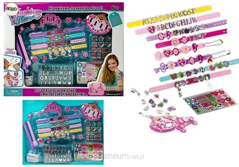 Zestaw do Biżuterii Bransoletek Zawieszek Literki DIY Jeśli twoja mała dziewczynka uwielbia świecidełka i wzory. To mamy super propozycję do robienia bransoletek. Zestaw do własnoręcznego tworzenia biżuterii . Twoja córka może pochwalić się kreatywnością oraz rozwinie w sobie zmysł artystyczny. Ogromny zestaw zawiera w sobie wszystko, co jest potrzebne do stworzenia bransoletek, albo pięknych zawieszek do torby , którą zabierze do szkoły. Ogrom elementów na pewno ją zachwycić i nie jedna koleżanka będzie zachwycać się zrobiona biżuterią. Zabawa, podczas której dziewczynka może samodzielnie tworzyć biżuterie, poprawi jej umiejętności manualne oraz oryginalność w kreowaniu własnego stylu i przede wszystkim wyobraźnie. Zestaw zawiera: - literki od A do Z - naklejki z napisami i wzorami - zestaw dużych zawieszek, - 4paski do bransoletek, proste zapięcie na zatrzask - łańcuszki do zawieszek - różne kształty do naklejenia wybranej naklejki. Wymiary opakowania: 37 cm x 30 cm x 5 cm Zestaw zapakowany jest w duże, ozdobne pudełko, dzięki czemu nadaje się na prezent dla każdej artystki. Ze względu na mnogość małych elementów, zabawka przeznaczona jest dla wszystkich dziewczynek powyżej 6. roku życia.